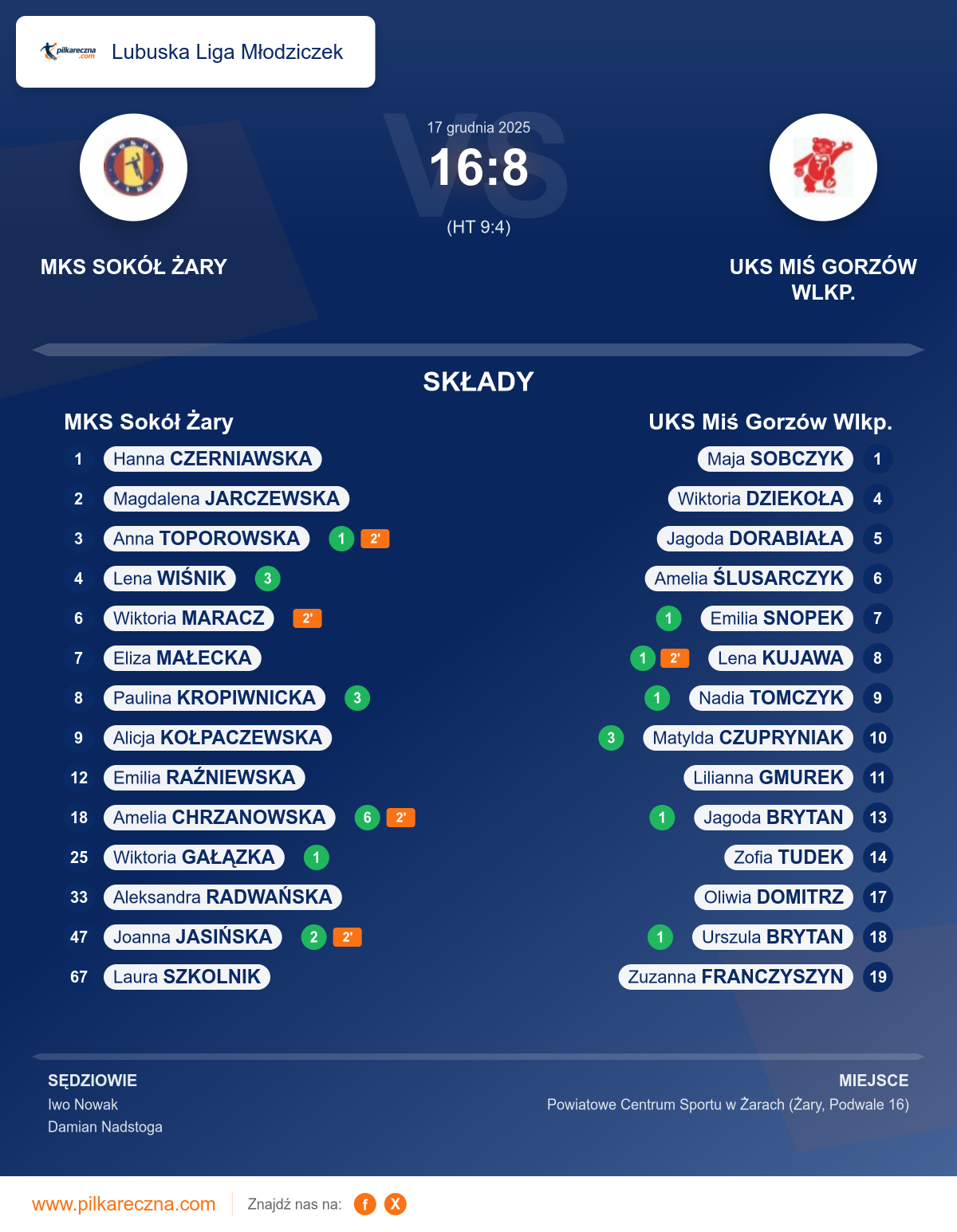 MKS Sokół Żary 16–8 UKS Miś Gorzów Wlkp.