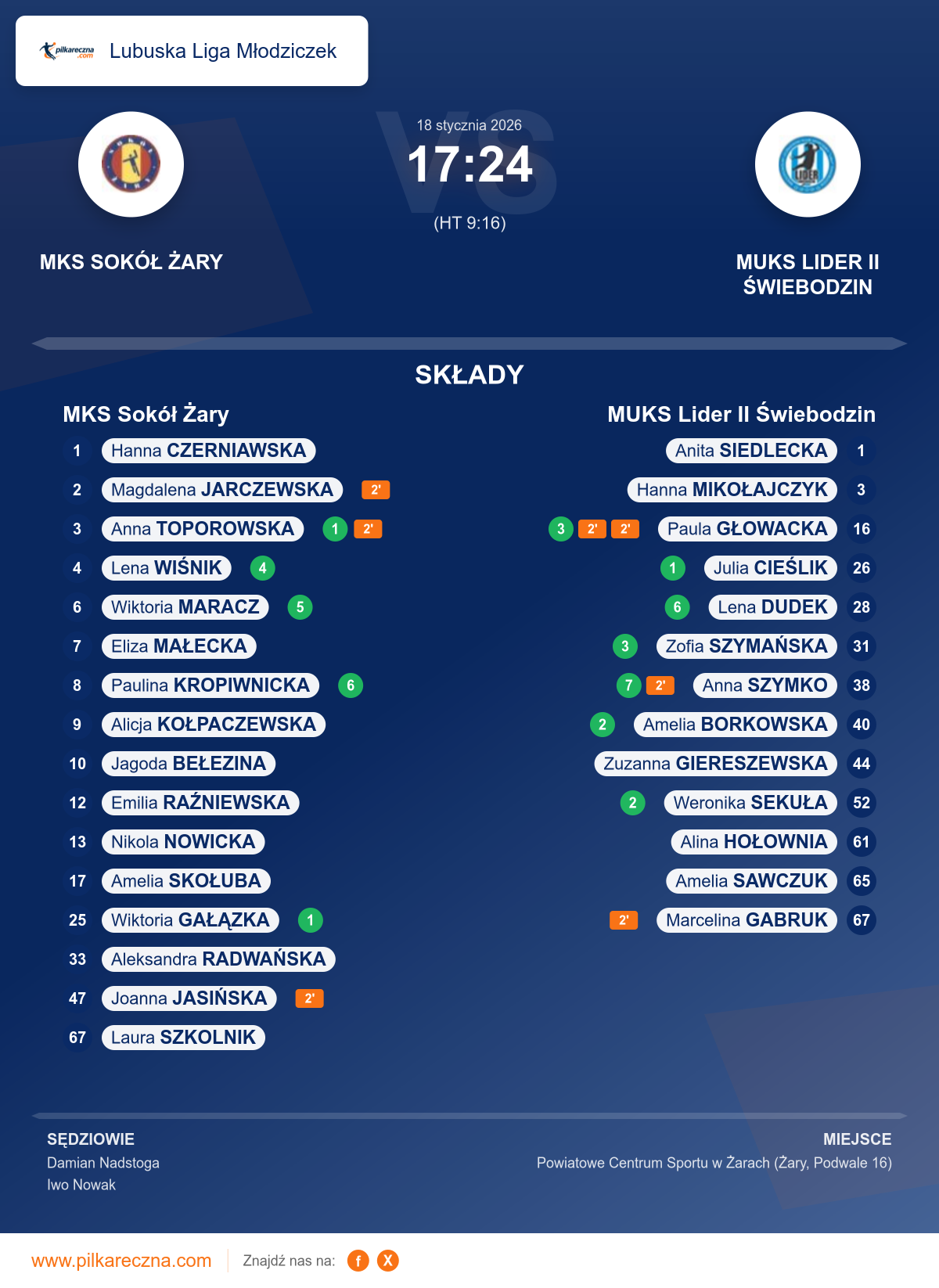 MKS Sokół Żary 17–24 MUKS Lider II Świebodzin