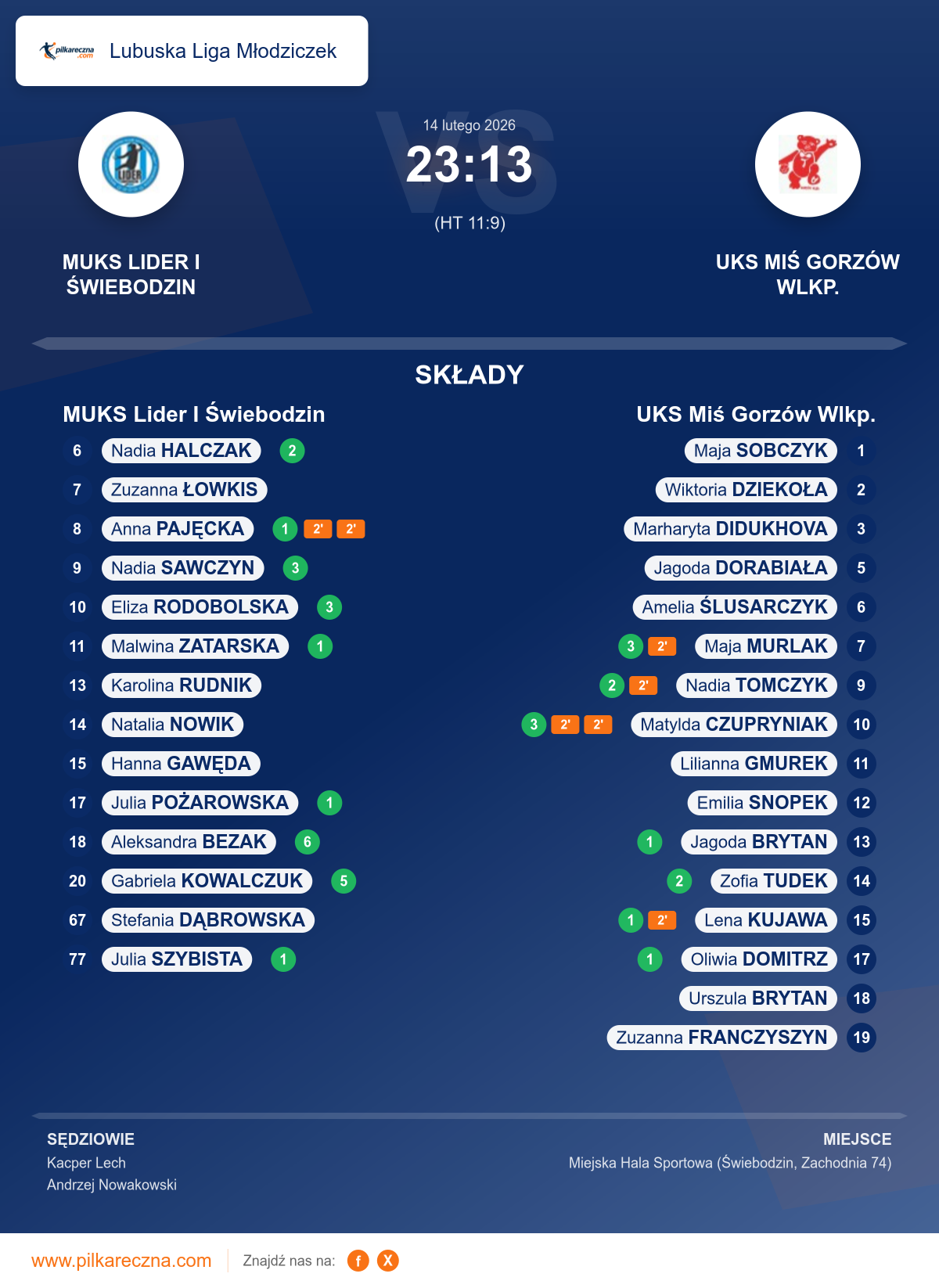 MUKS Lider I Świebodzin 23–13 UKS Miś Gorzów Wlkp.