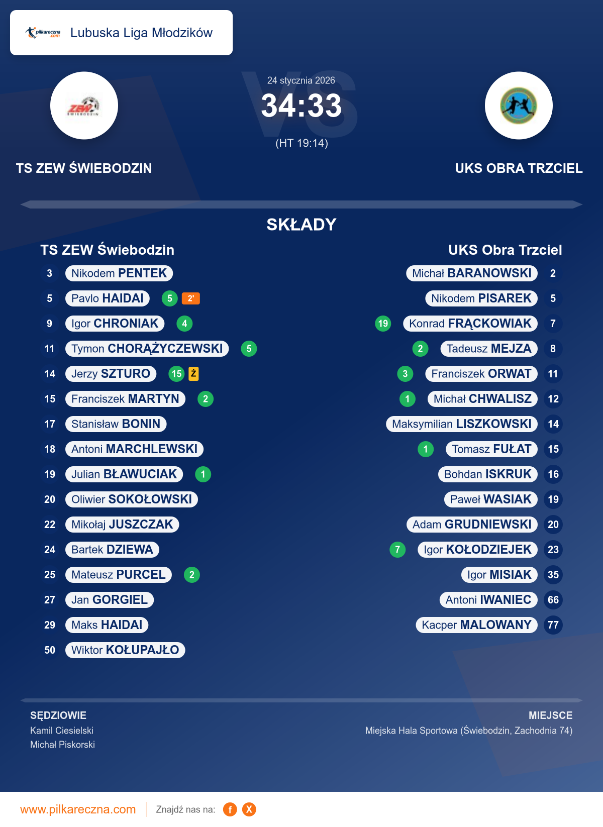 TS ZEW Świebodzin 34–33 UKS Obra Trzciel