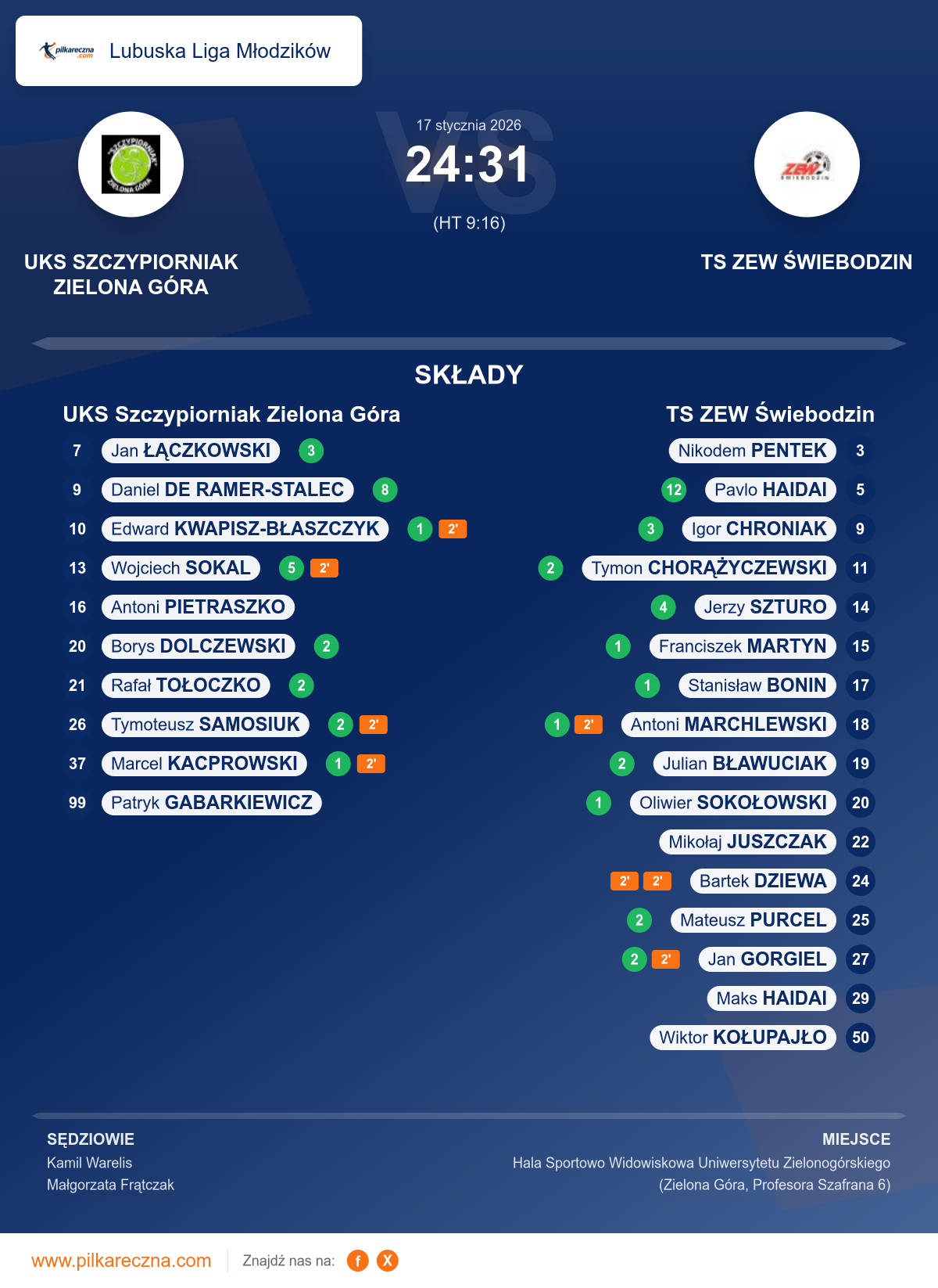 UKS Szczypiorniak Zielona Góra 24–31 TS ZEW Świebodzin