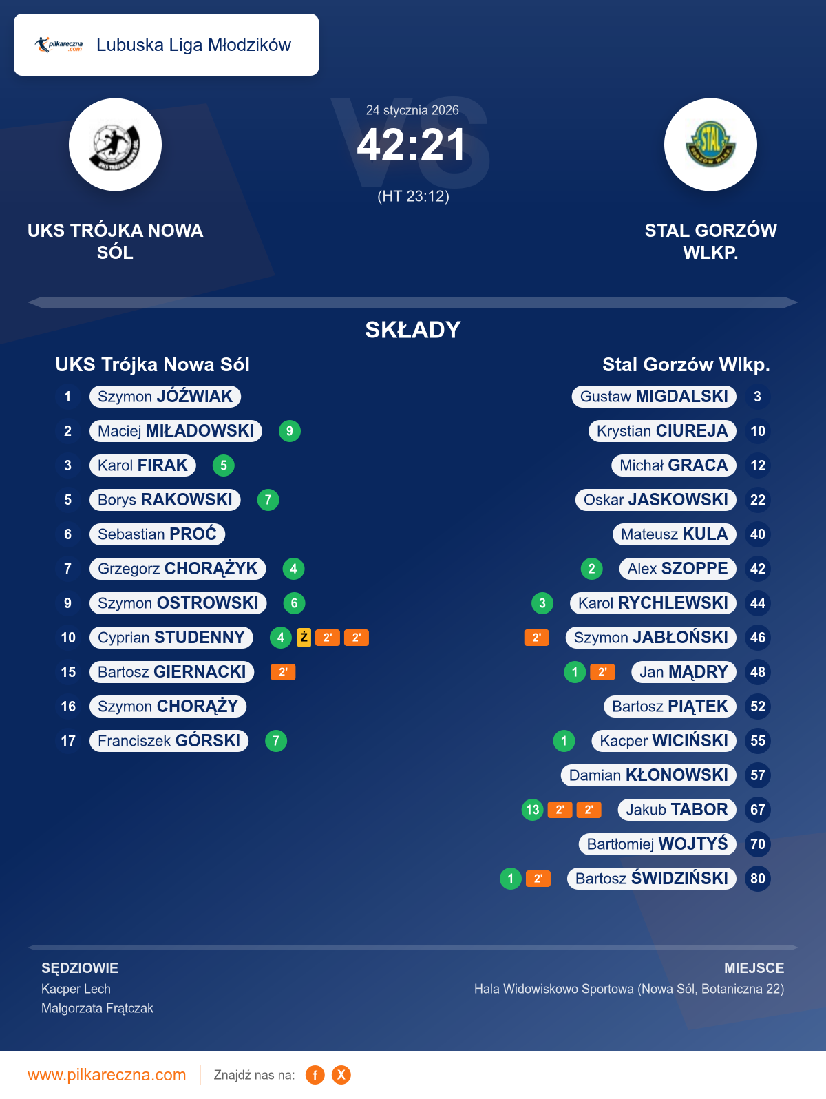 UKS Trójka Nowa Sól 42–21 Stal Gorzów Wlkp.