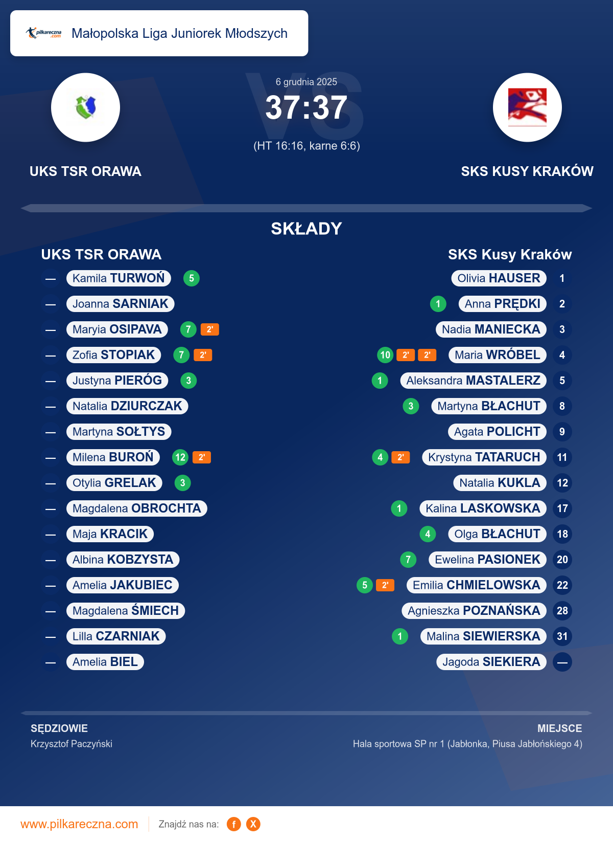 UKS TSR ORAWA 37–37 SKS Kusy Kraków