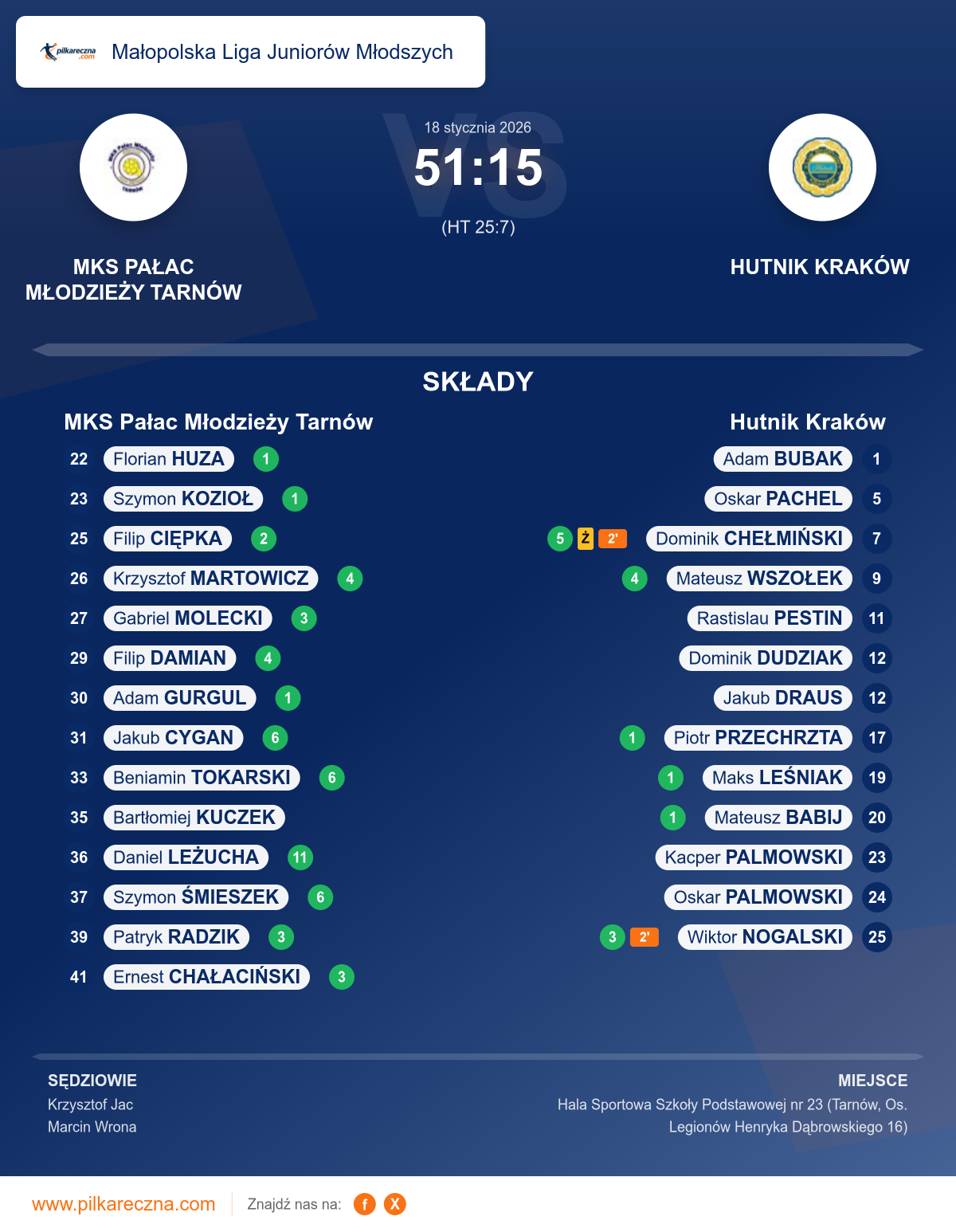 MKS Pałac Młodzieży Tarnów 51–15 Hutnik Kraków
