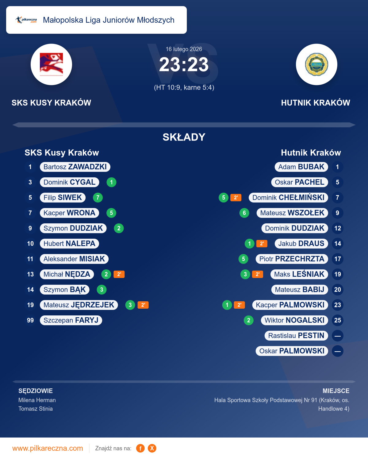 SKS Kusy Kraków 23–23 Hutnik Kraków