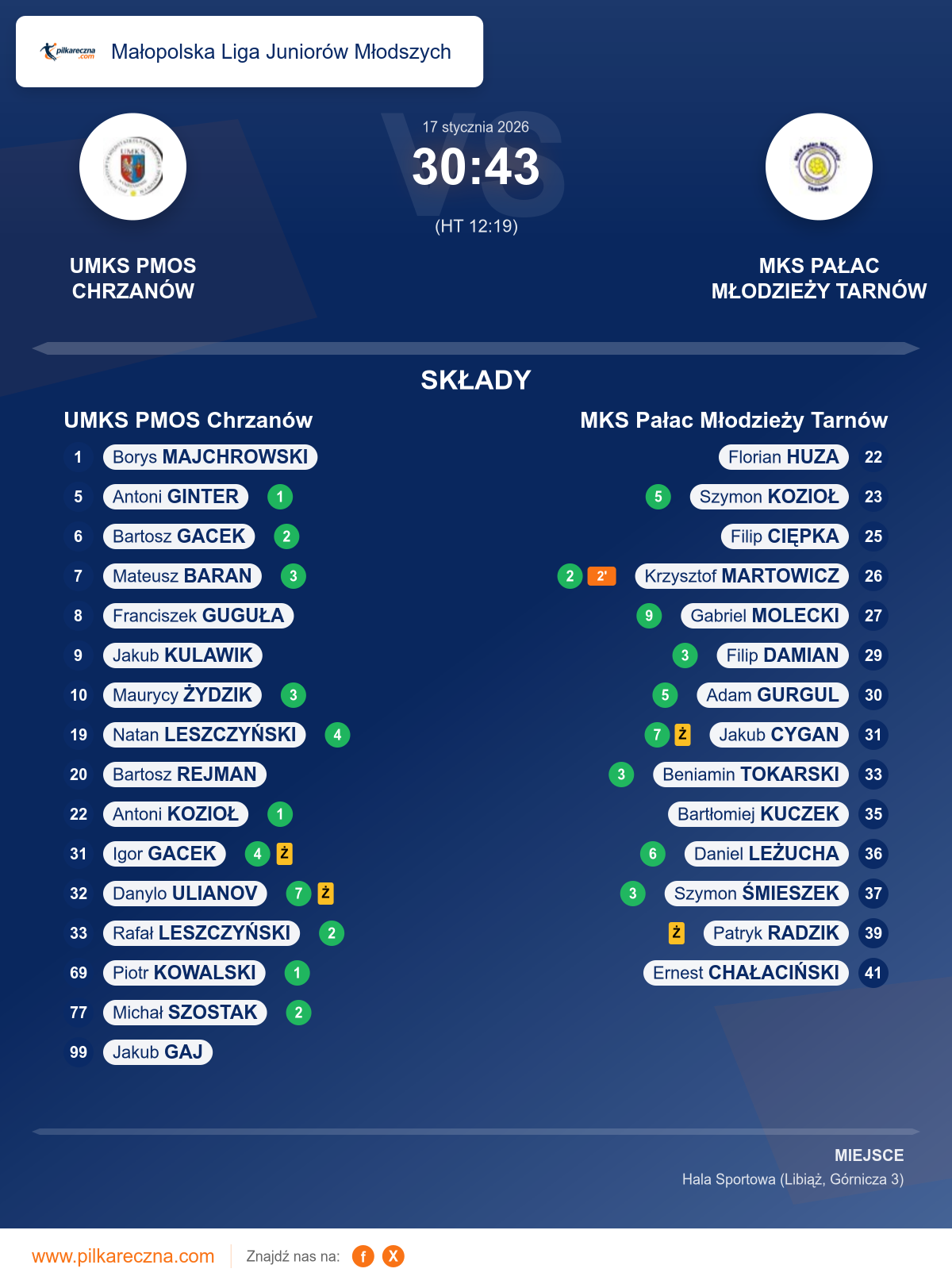 Wynik: 30–43 (HT 12–19)