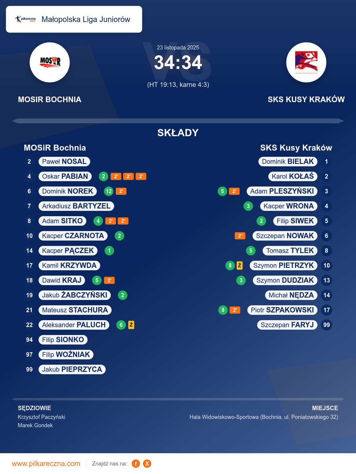 MOSiR Bochnia 34–34 SKS Kusy Kraków