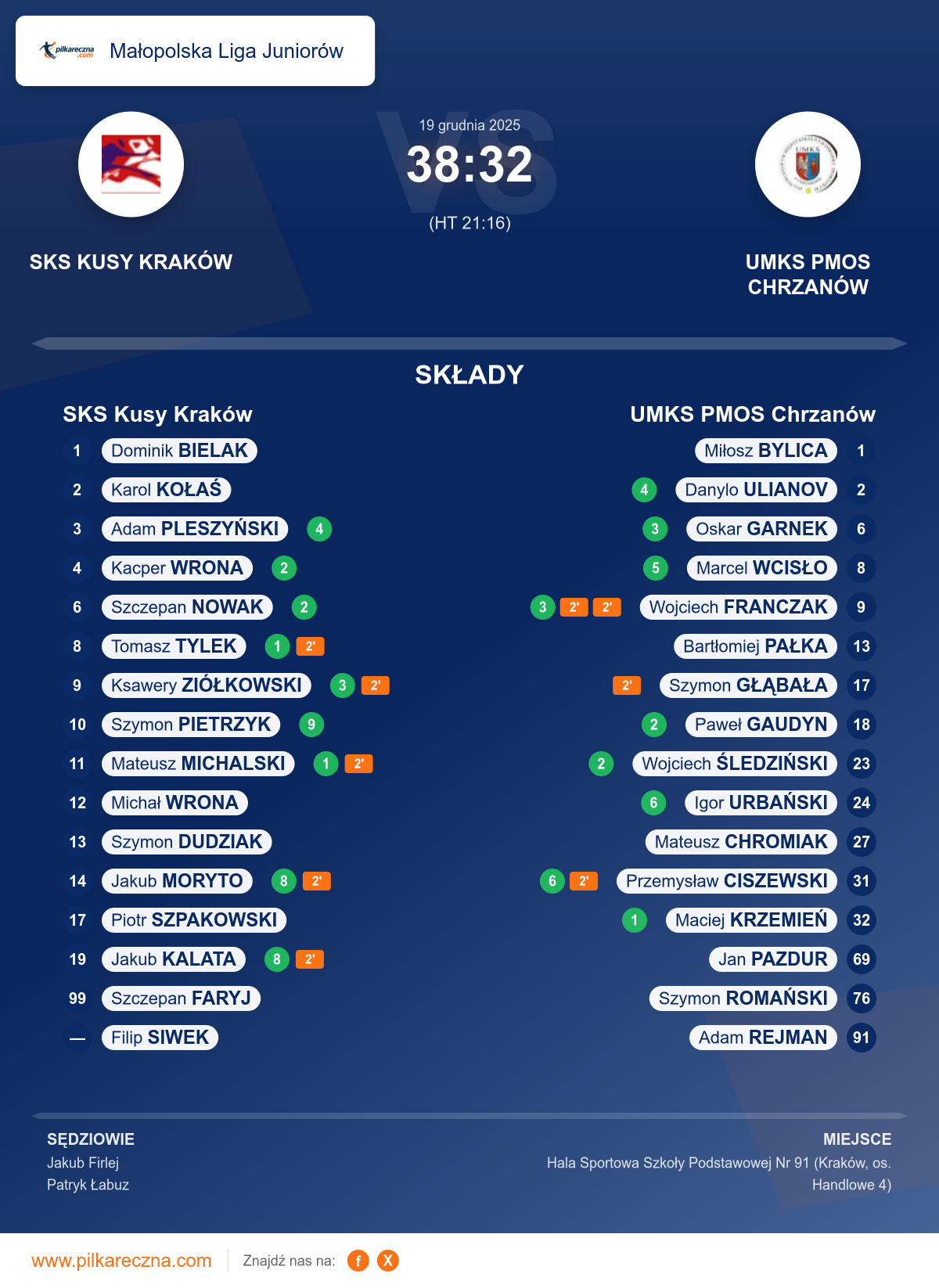 SKS Kusy Kraków 38–32 UMKS PMOS Chrzanów
