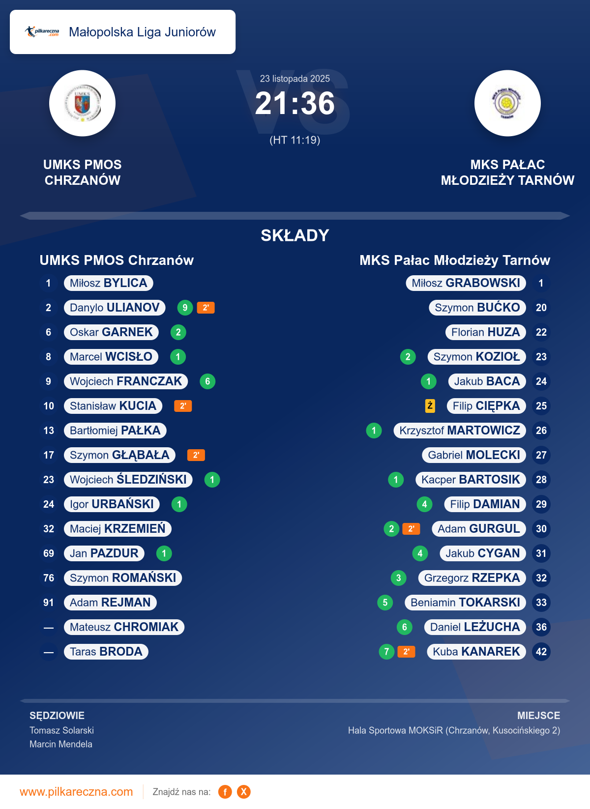 Zawodnicy: Kuba Kanarek (7), Daniel Leżucha (6), Beniamin Tokarski (5), Filip Damian (4), Jakub Cygan (4), Grzegorz Rzepka (3), Adam Gurgul (2), Szymon Kozioł (2), Jakub Baca (1), Kacper Bartosik (1), Krzysztof Martowicz (1), Filip Ciępka, Gabriel Molecki