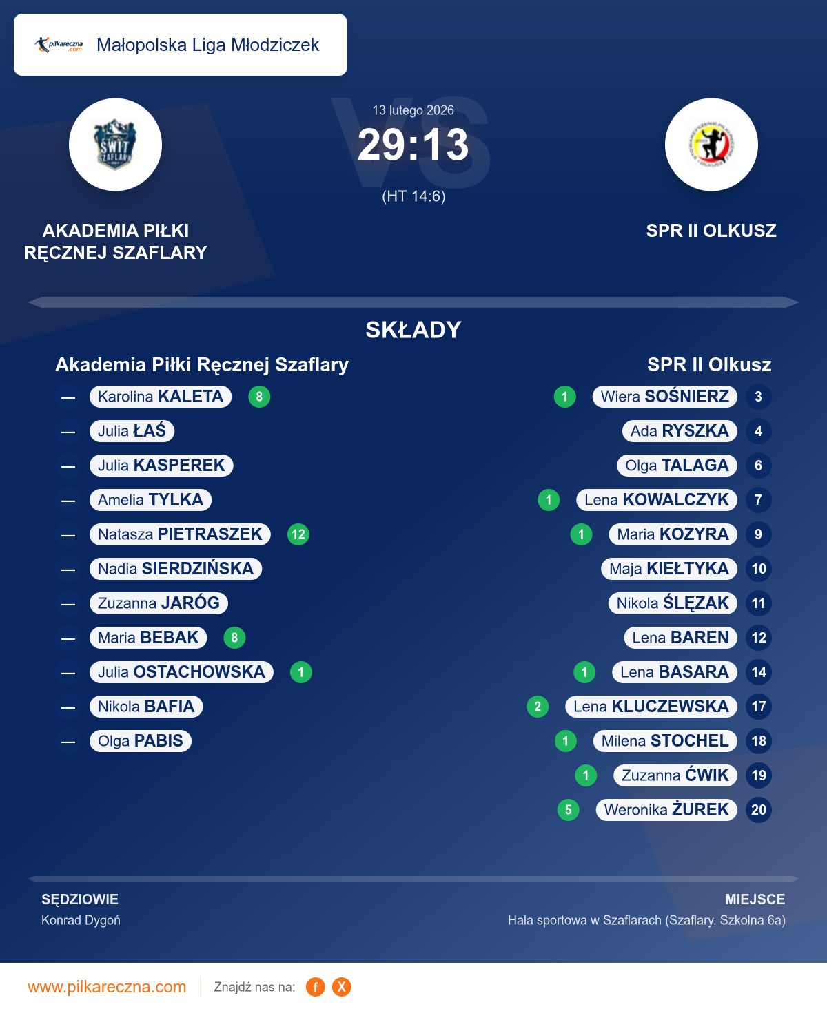 Akademia Piłki Ręcznej Szaflary 29–13 SPR II Olkusz