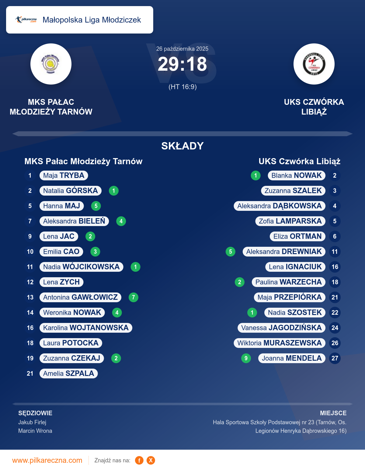 MKS Pałac Młodzieży Tarnów 29–18 UKS Czwórka Libiąż