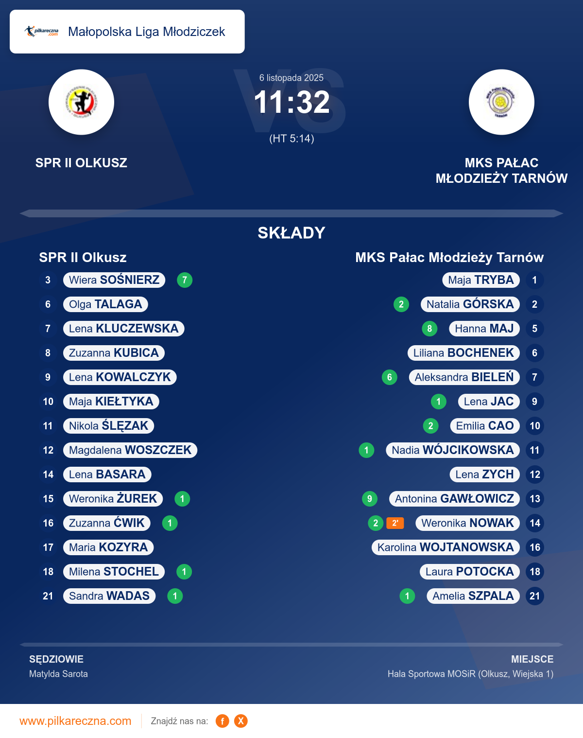 Zawodnicy: Wiera Sośnierz (7), Milena Stochel (1), Sandra Wadas (1), Weronika Żurek (1), Zuzanna Ćwik (1), Lena Basara, Lena Kluczewska, Lena Kowalczyk, Maja Kiełtyka, Maria Kozyra, Nikola Ślęzak, Olga Talaga, Zuzanna Kubica