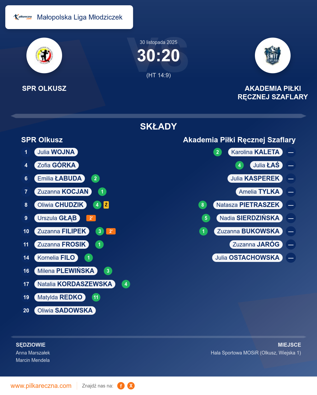 SPR Olkusz 30–20 Akademia Piłki Ręcznej Szaflary