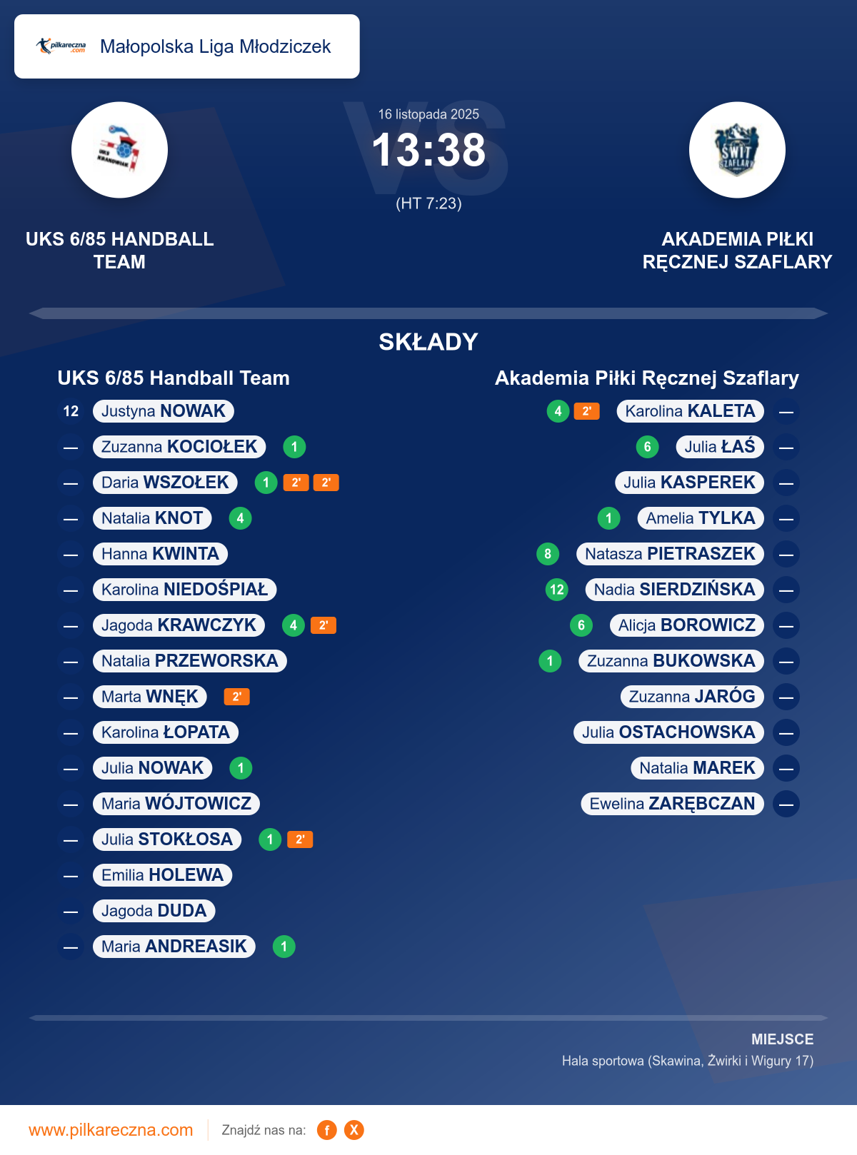 UKS 6/85 Handball Team 13–38 Akademia Piłki Ręcznej Szaflary