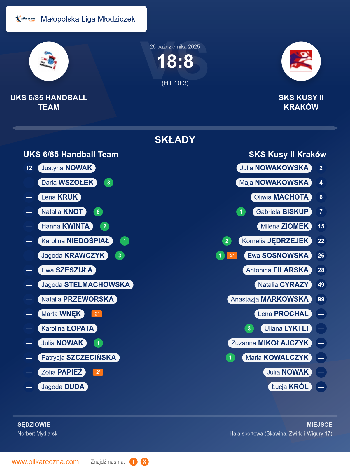 UKS 6/85 Handball Team 18–8 SKS Kusy II Kraków
