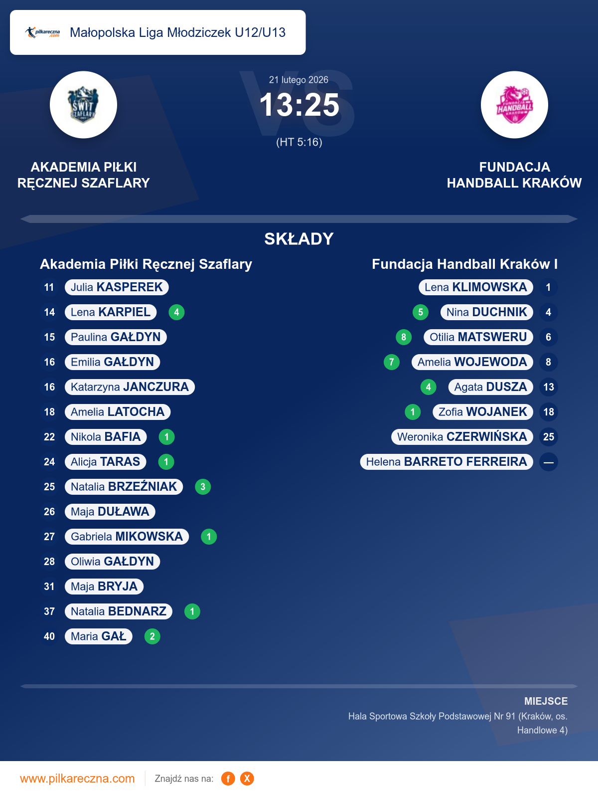 Akademia Piłki Ręcznej Szaflary 13–25 Fundacja Handball Kraków I