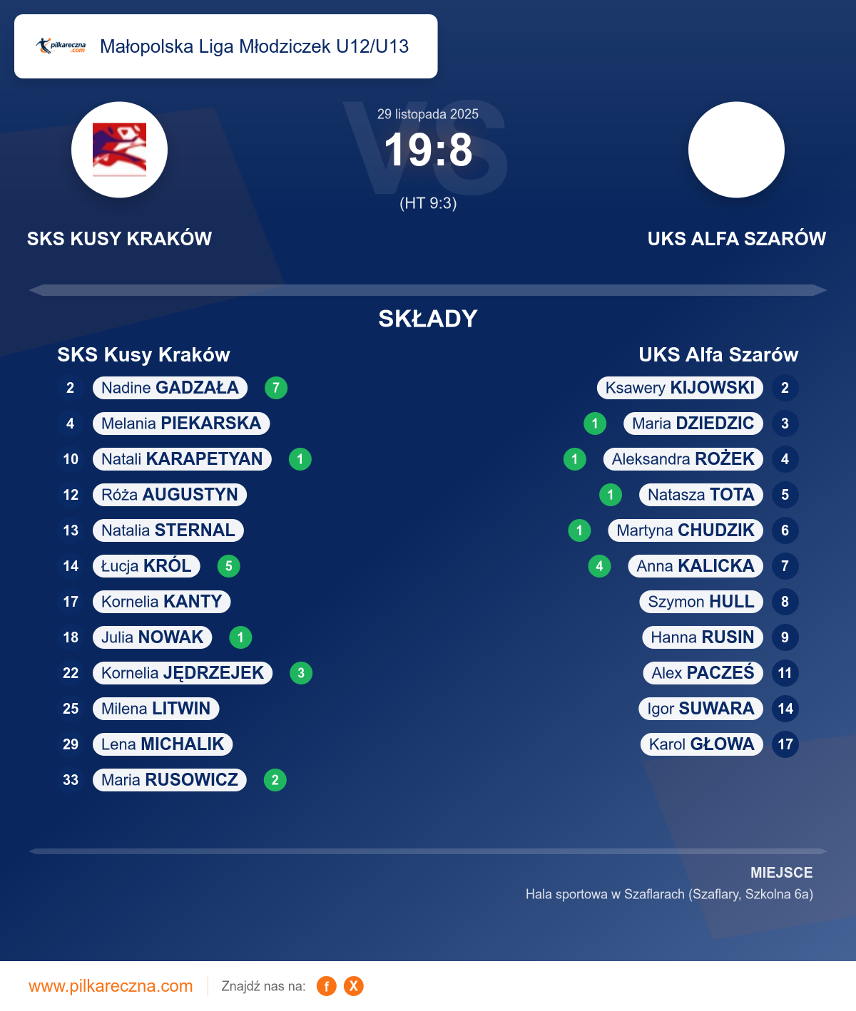 SKS Kusy Kraków 19–8 UKS Alfa Szarów