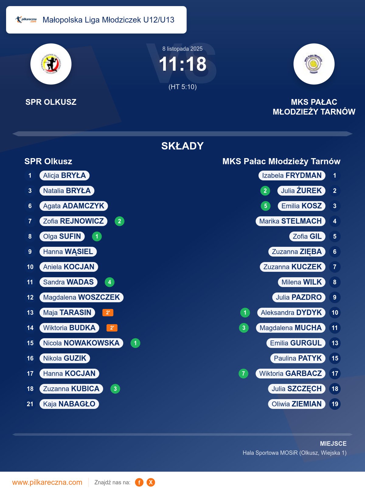 SPR Olkusz 11–18 MKS Pałac Młodzieży Tarnów