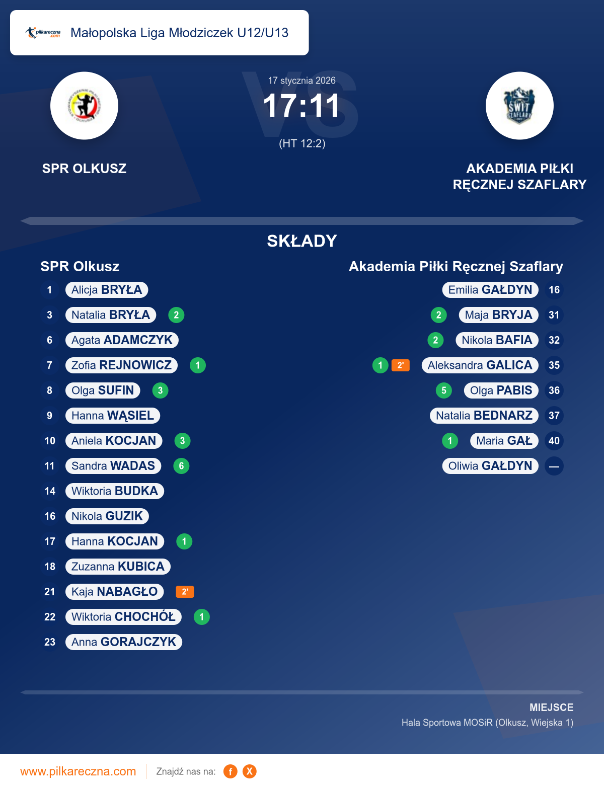 SPR Olkusz 17–11 Akademia Piłki Ręcznej Szaflary