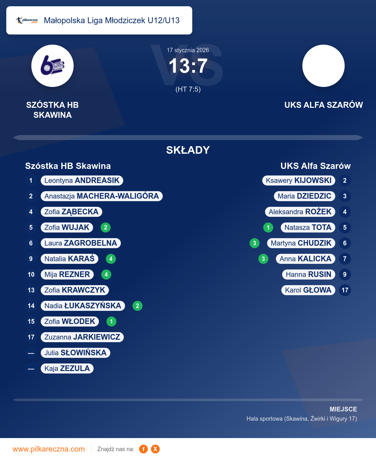 Szóstka HB Skawina 13–7 UKS Alfa Szarów