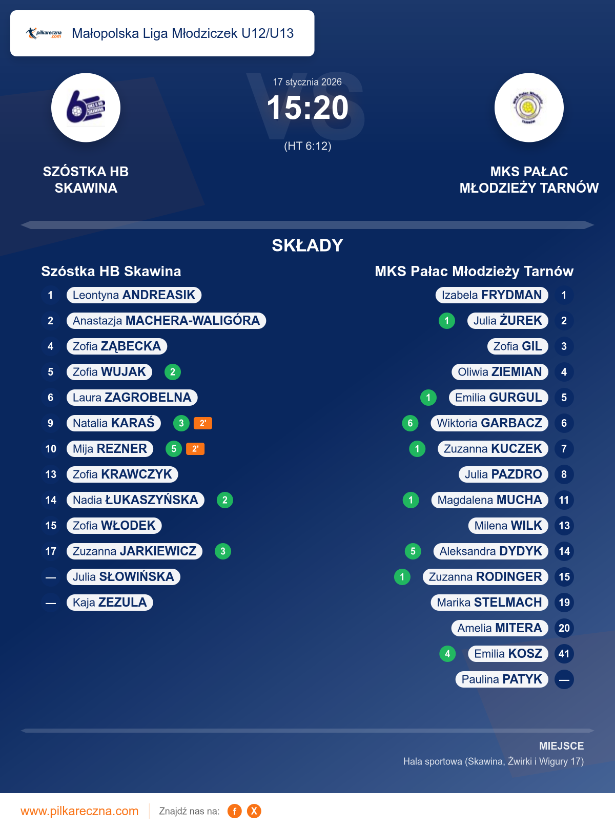 Szóstka HB Skawina 15–20 MKS Pałac Młodzieży Tarnów