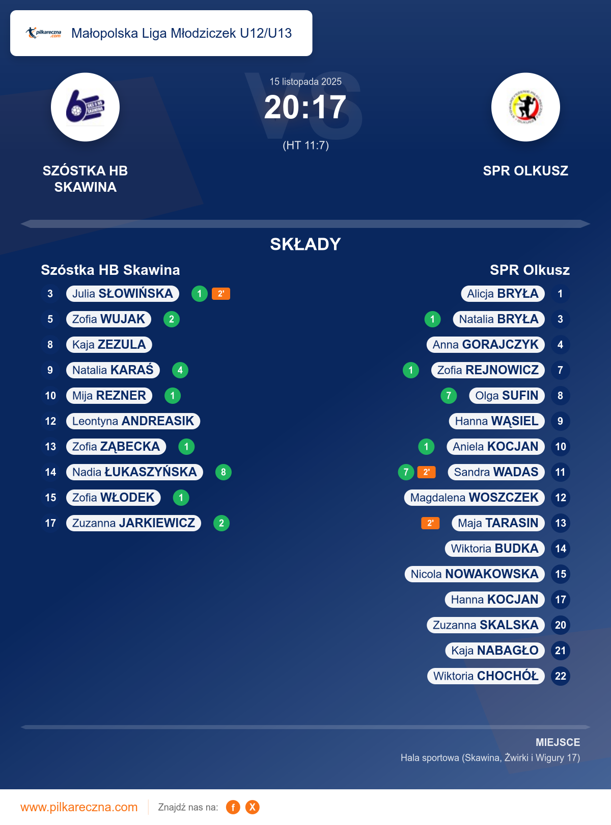 Szóstka HB Skawina 20–17 SPR Olkusz