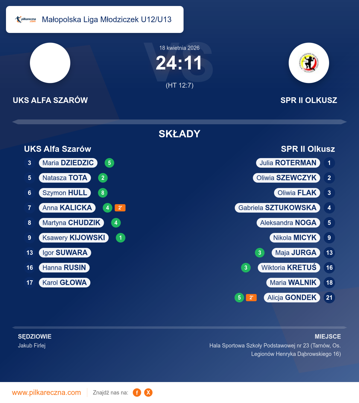 UKS Alfa Szarów 24–11 SPR II Olkusz