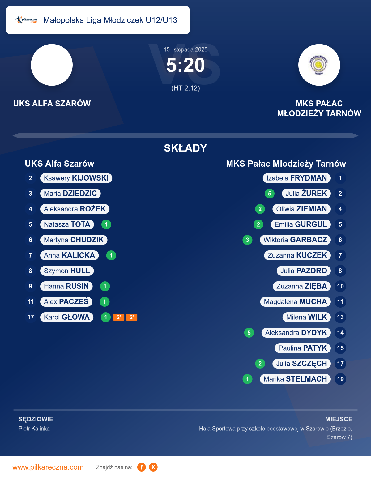 UKS Alfa Szarów 5–20 MKS Pałac Młodzieży Tarnów