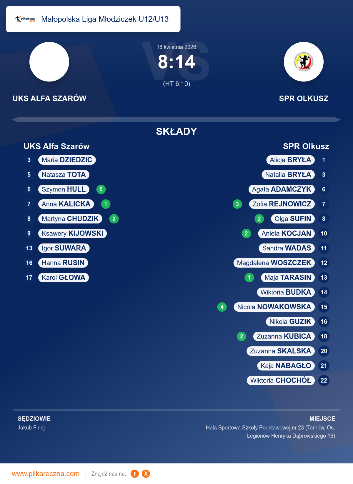 UKS Alfa Szarów — SPR Olkusz