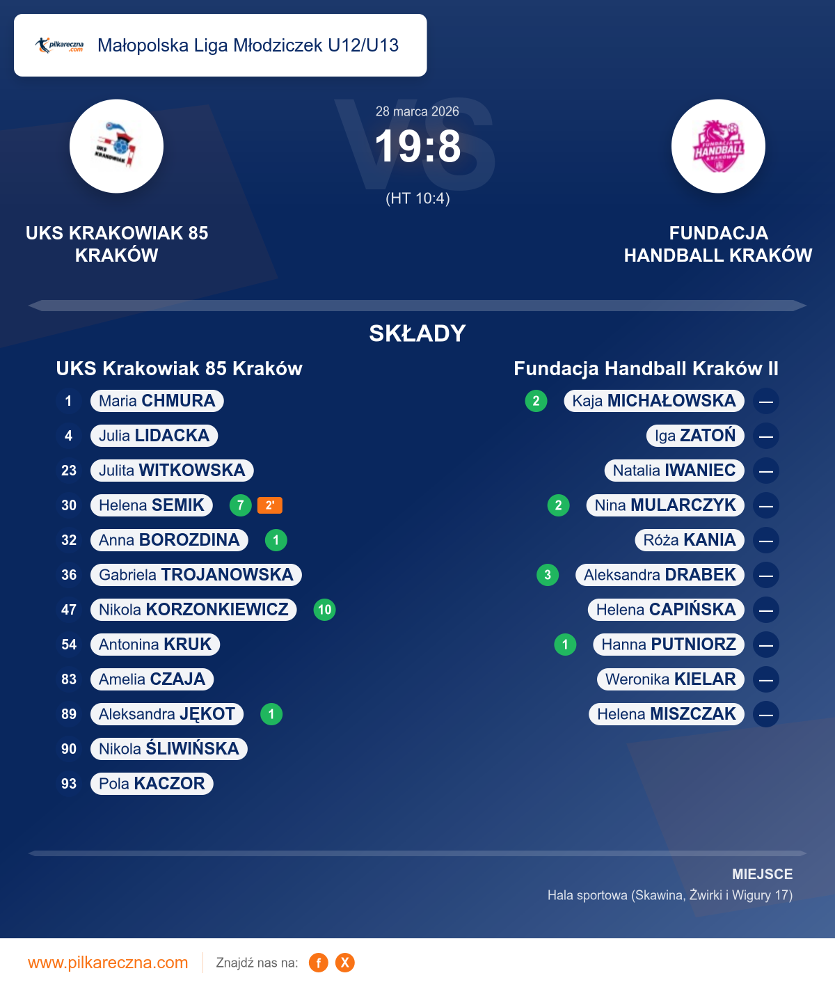 UKS Krakowiak 85 Kraków 19–8 Fundacja Handball Kraków II