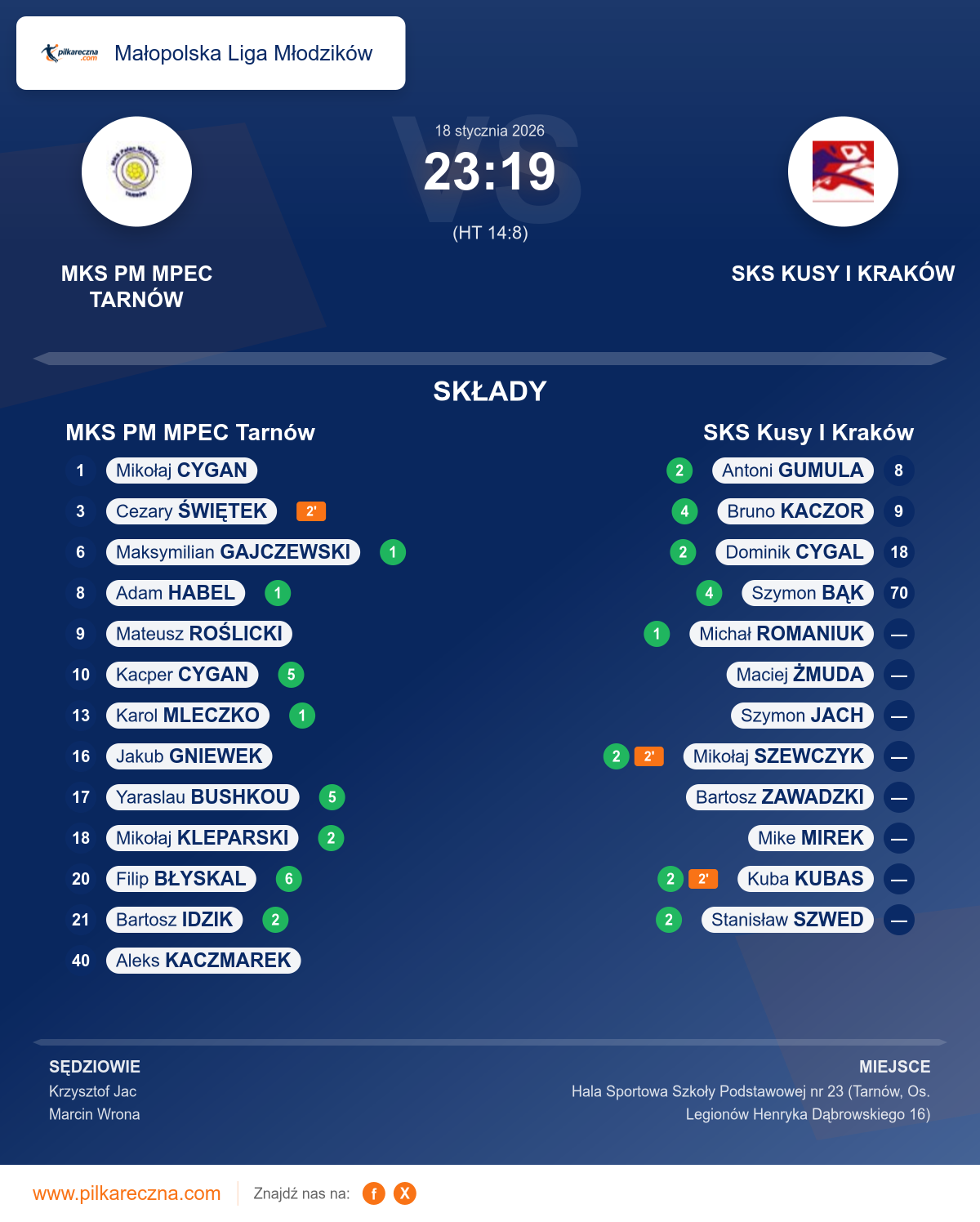 MKS PM MPEC Tarnów 23–19 SKS Kusy I Kraków