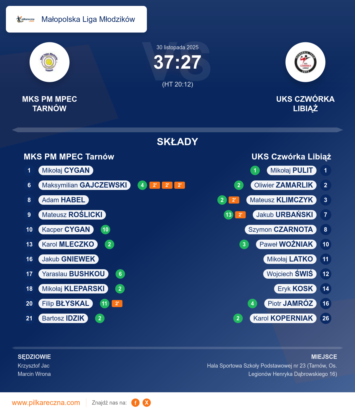 MKS PM MPEC Tarnów 37–27 UKS Czwórka Libiąż