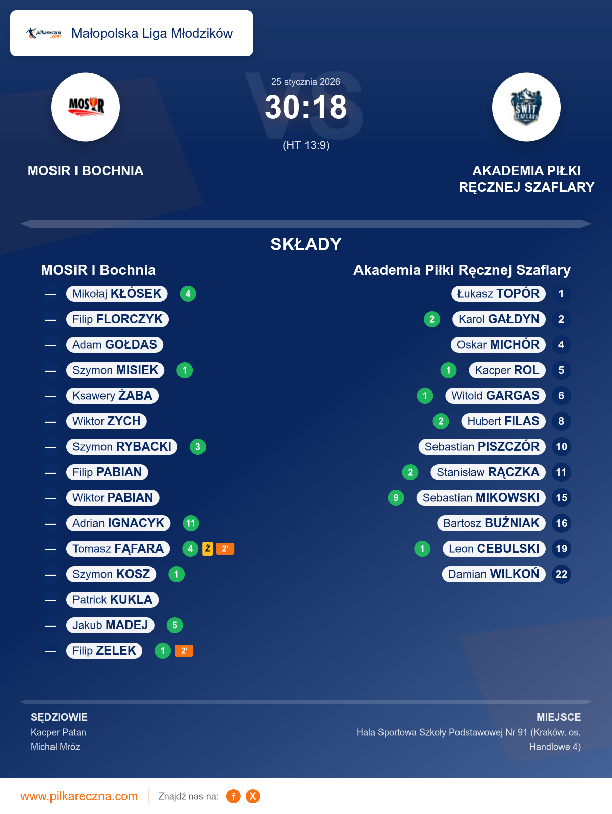 Wynik: 30–18 (HT 13–9)
