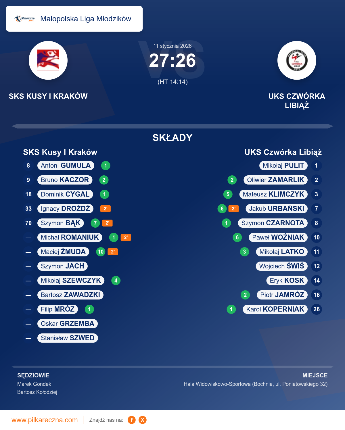 SKS Kusy I Kraków 27–26 UKS Czwórka Libiąż