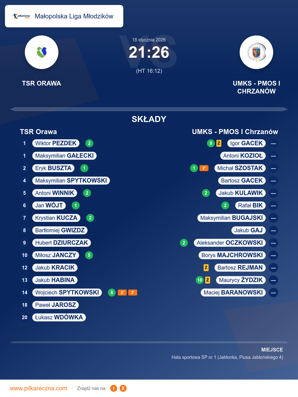Zawodnicy: Maurycy Żydzik (10), Igor Gacek (9), Aleksander Oczkowski (2), Jakub Kulawik (2), Rafał Bik (2), Michał Szostak (1), Antoni Kozioł, Bartosz Gacek, Bartosz Rejman, Borys Majchrowski, Jakub Gaj, Maciej Baranowski, Maksymilian Bugajski