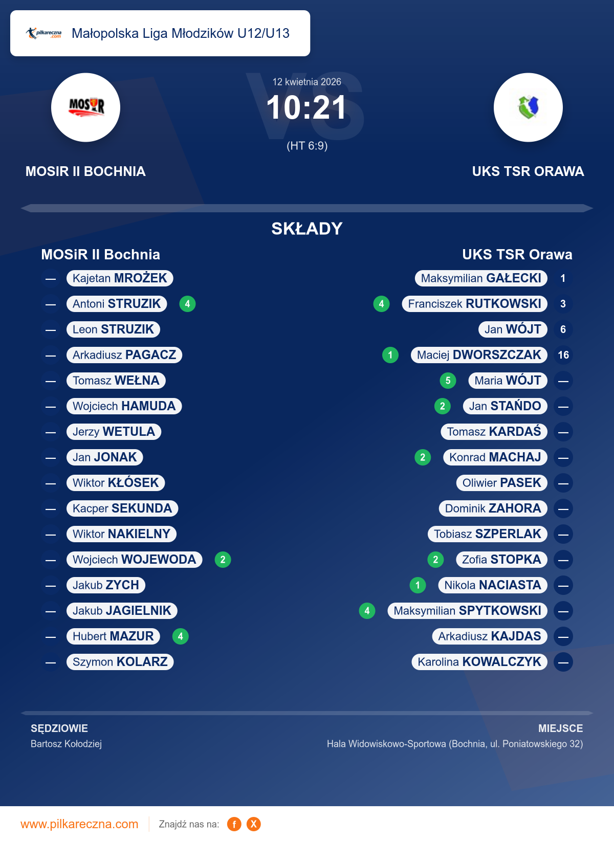 MOSiR II Bochnia 10–21 UKS TSR Orawa