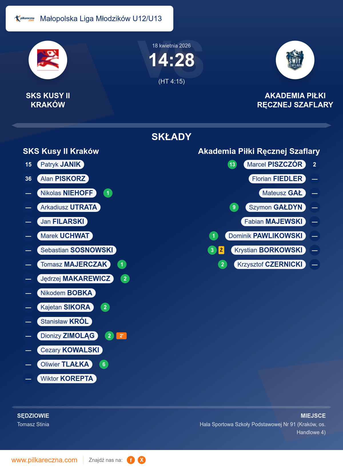 SKS Kusy II Kraków 14–28 Akademia Piłki Ręcznej Szaflary