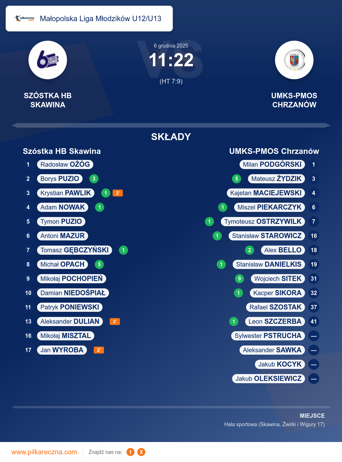 Szóstka HB Skawina 11–22 UMKS-PMOS Chrzanów