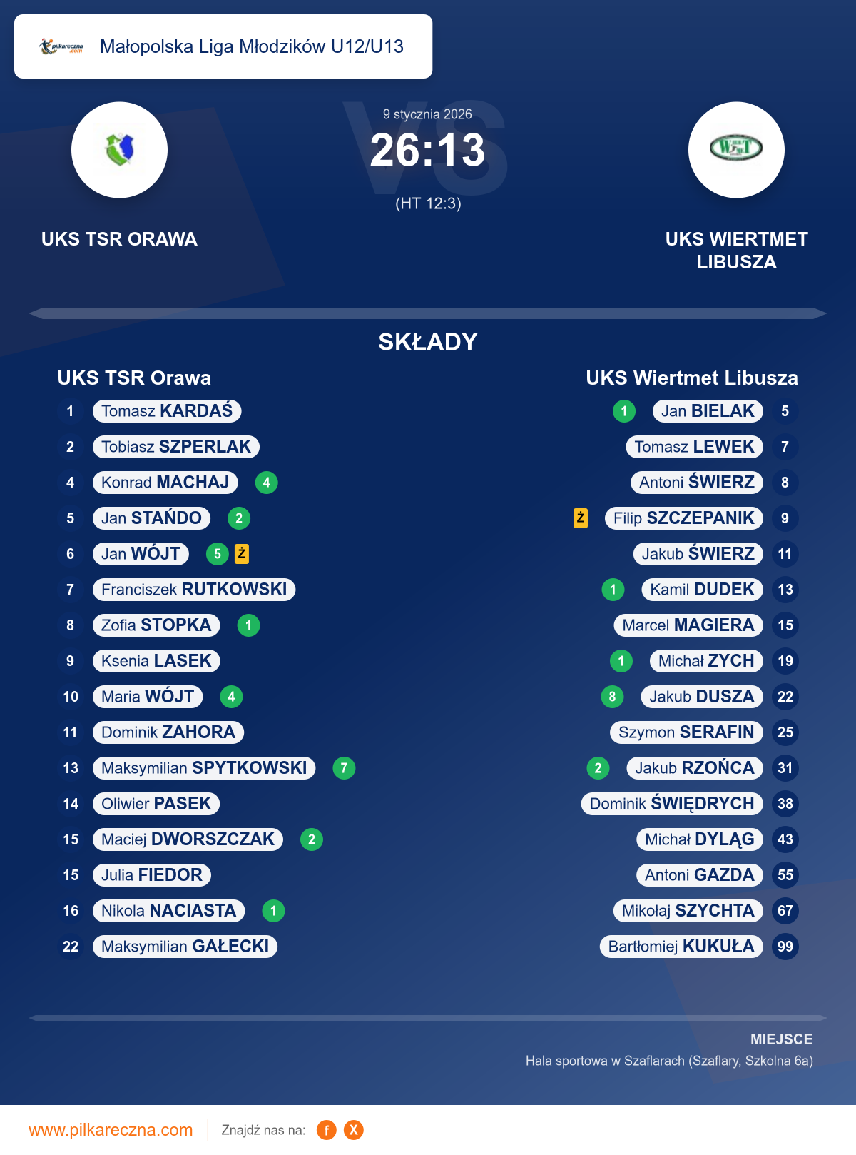 UKS TSR Orawa 26–13 UKS Wiertmet Libusza