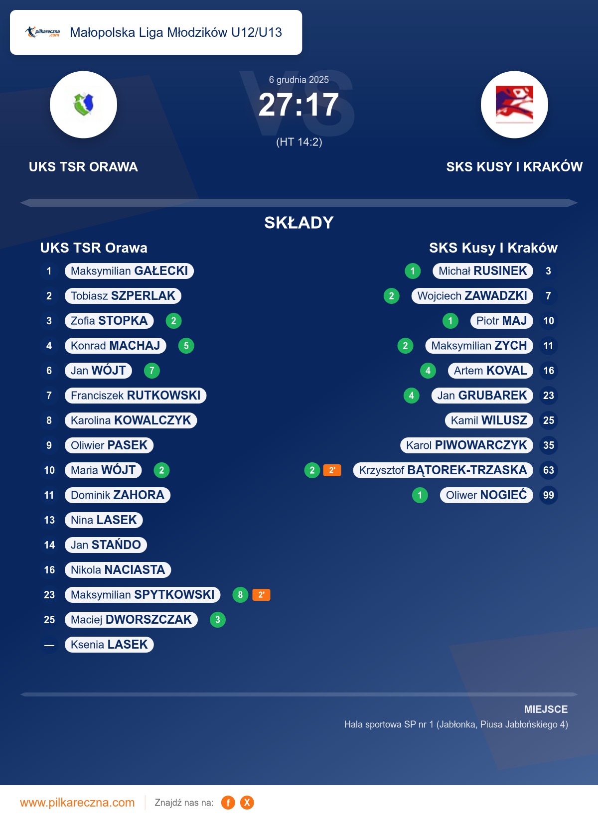 UKS TSR Orawa 27–17 SKS Kusy I Kraków