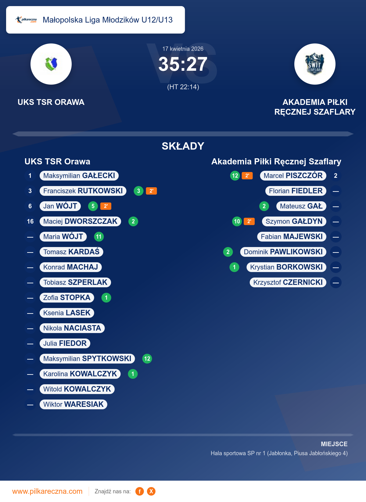 UKS TSR Orawa 35–27 Akademia Piłki Ręcznej Szaflary