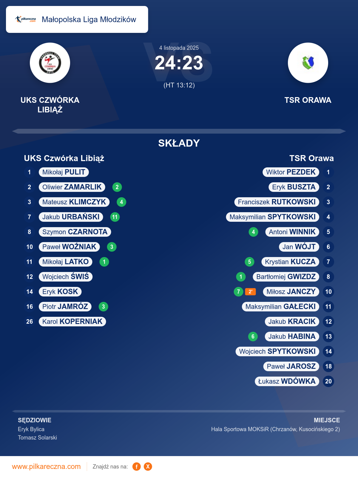 UKS Czwórka Libiąż 24–23 TSR Orawa