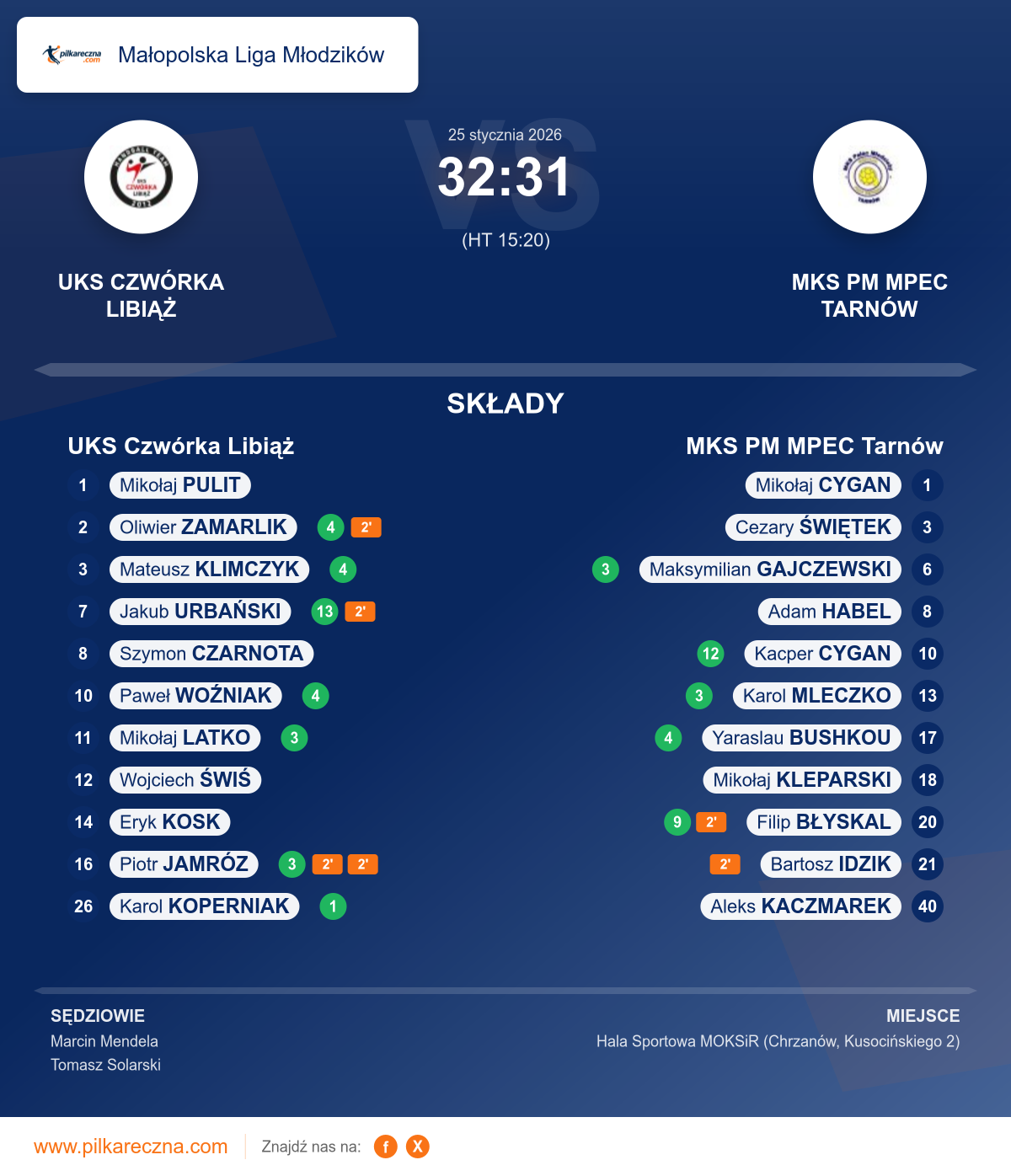 UKS Czwórka Libiąż 32–31 MKS PM MPEC Tarnów