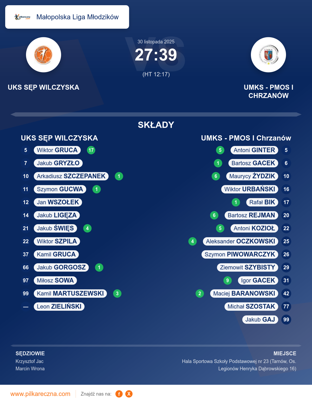 Zawodnicy: Wiktor Gruca (17), Jakub Święs (4), Kamil Martuszewski (3), Arkadiusz Szczepanek (1), Jakub Gorgosz (1), Szymon Gucwa (1), Jakub Gryzło, Jakub Ligęza, Leon Zieliński, Miłosz Sowa, Wiktor Szpila