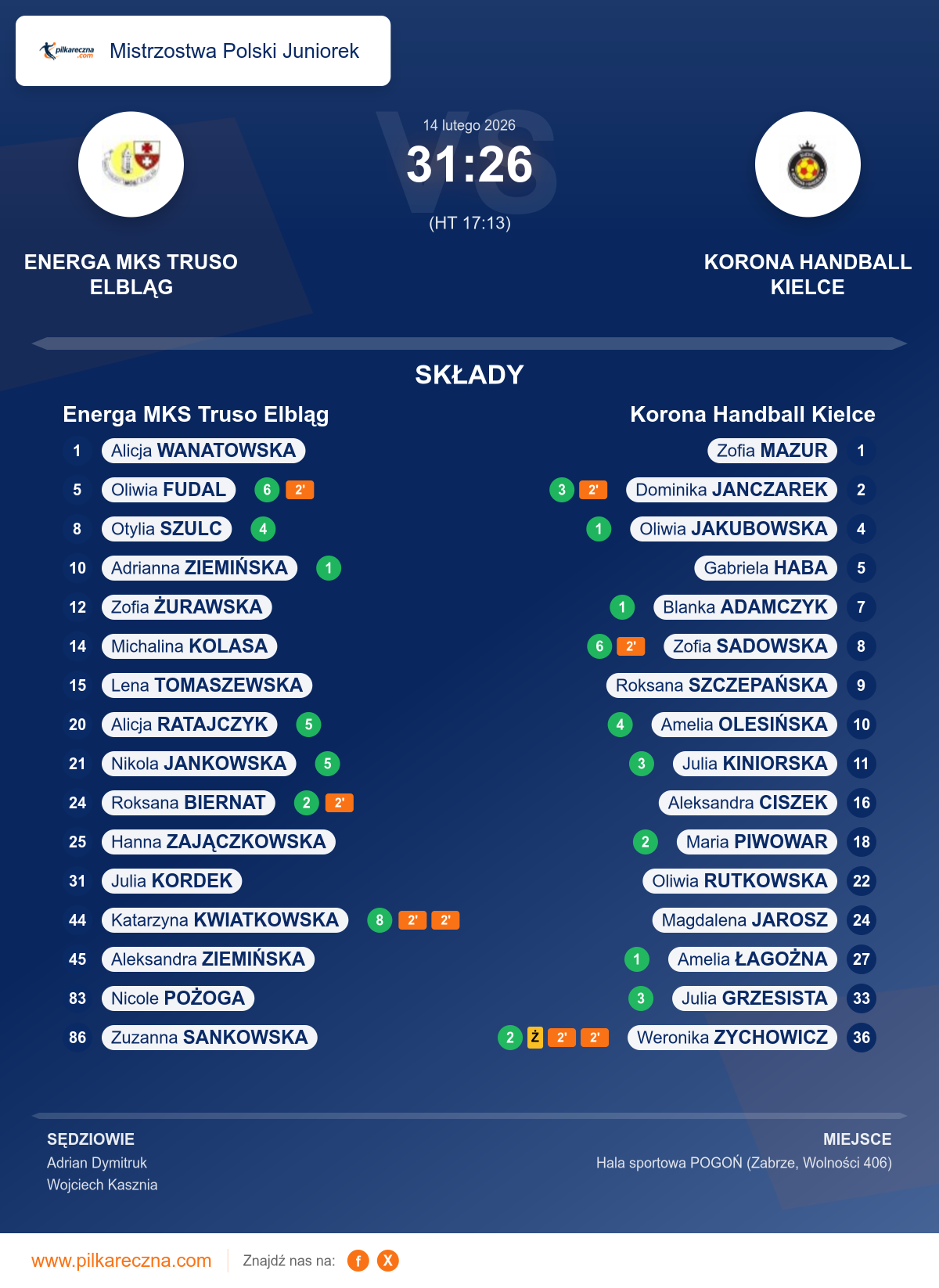 Energa MKS Truso Elbląg 31–26 Korona Handball Kielce