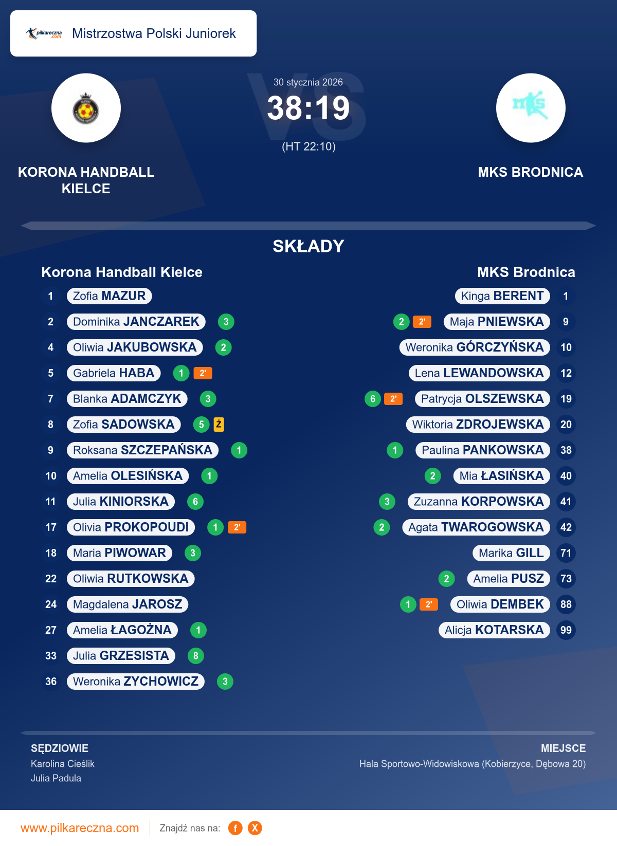 Korona Handball Kielce 38–19 MKS Brodnica