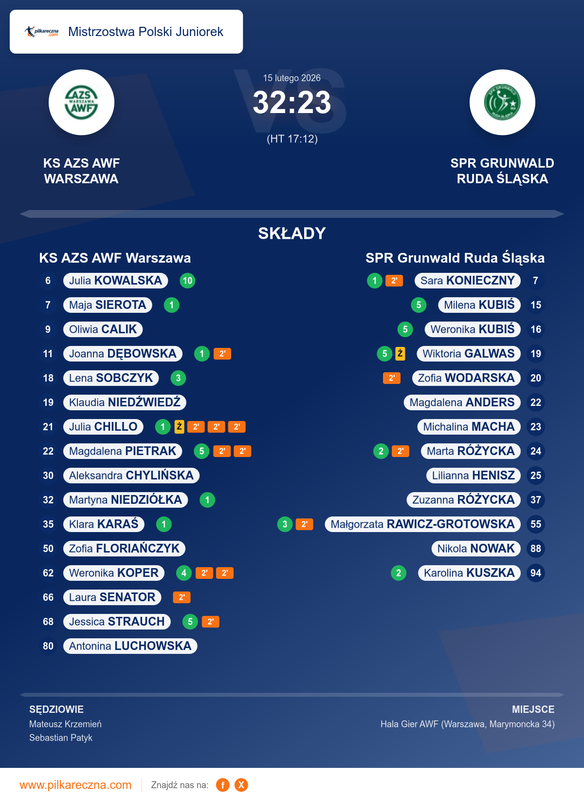 Wynik: 32–23 (HT 17–12)