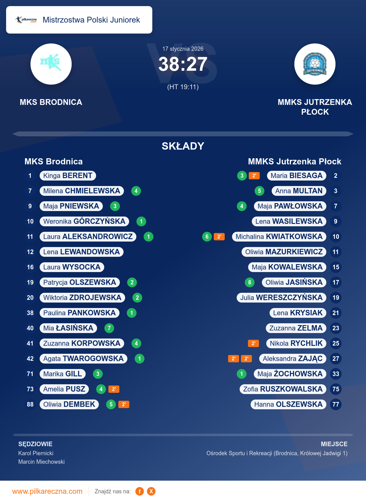 MKS Brodnica 38–27 MMKS Jutrzenka Płock