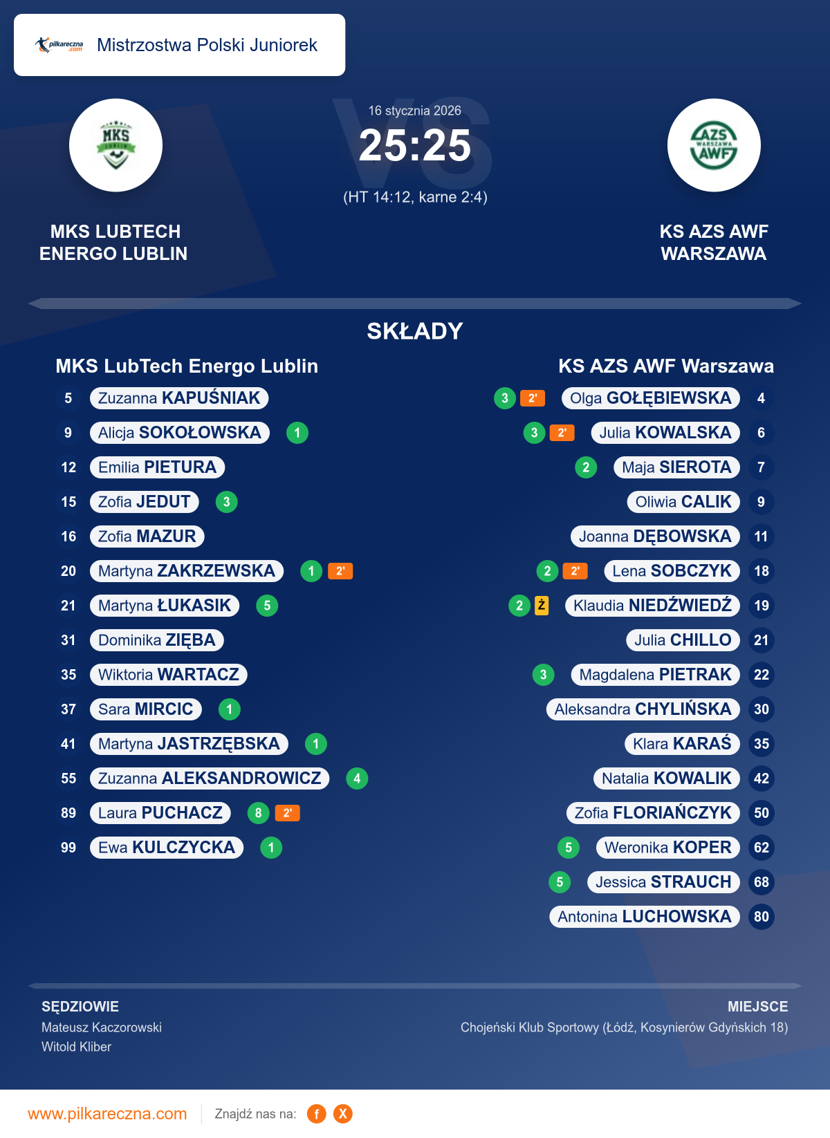 Wynik: 25–25 (HT 14–12), po karnych 2–4