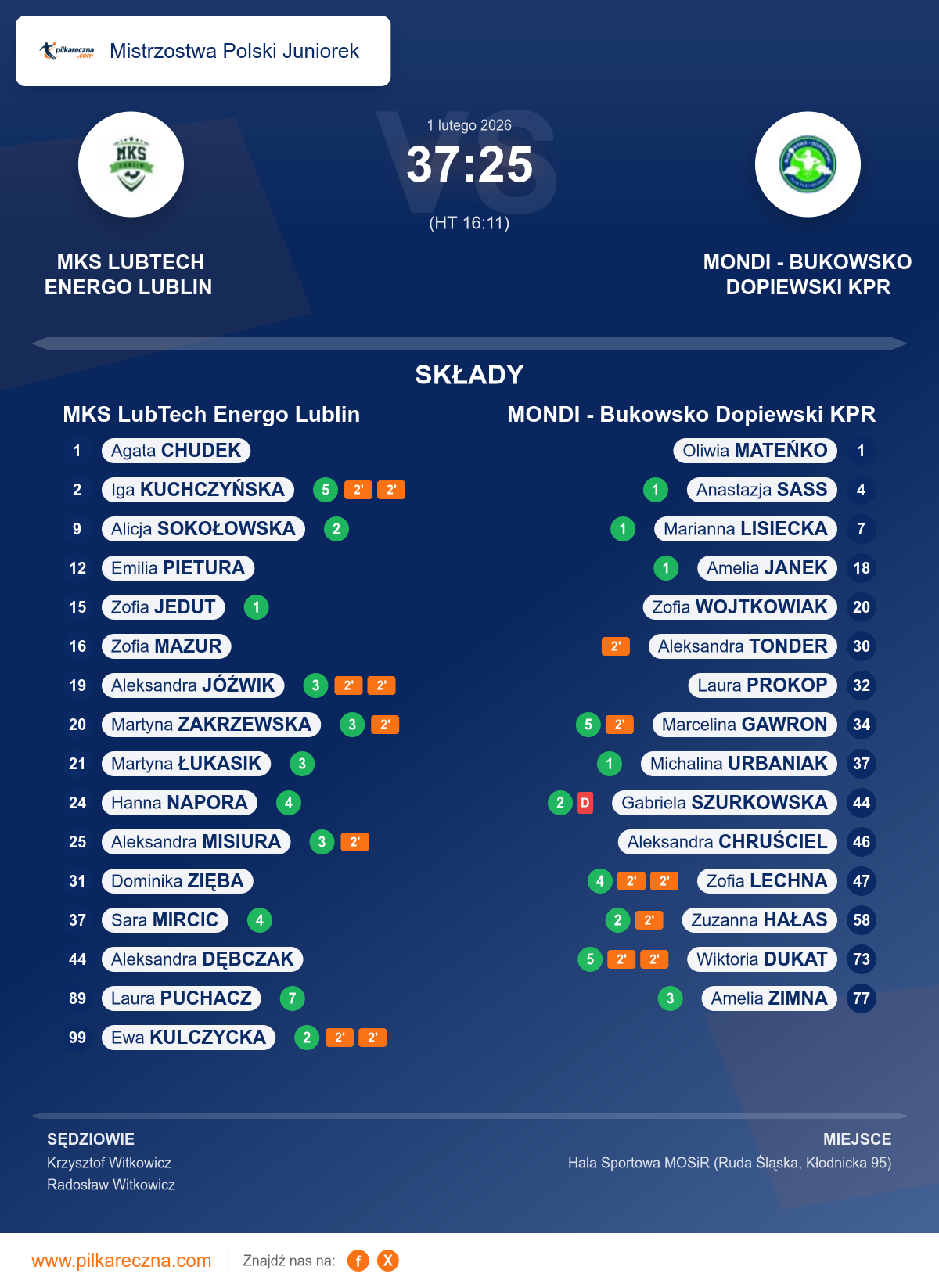 Sędziowali: Krzysztof Witkowicz, Radosław Witkowicz